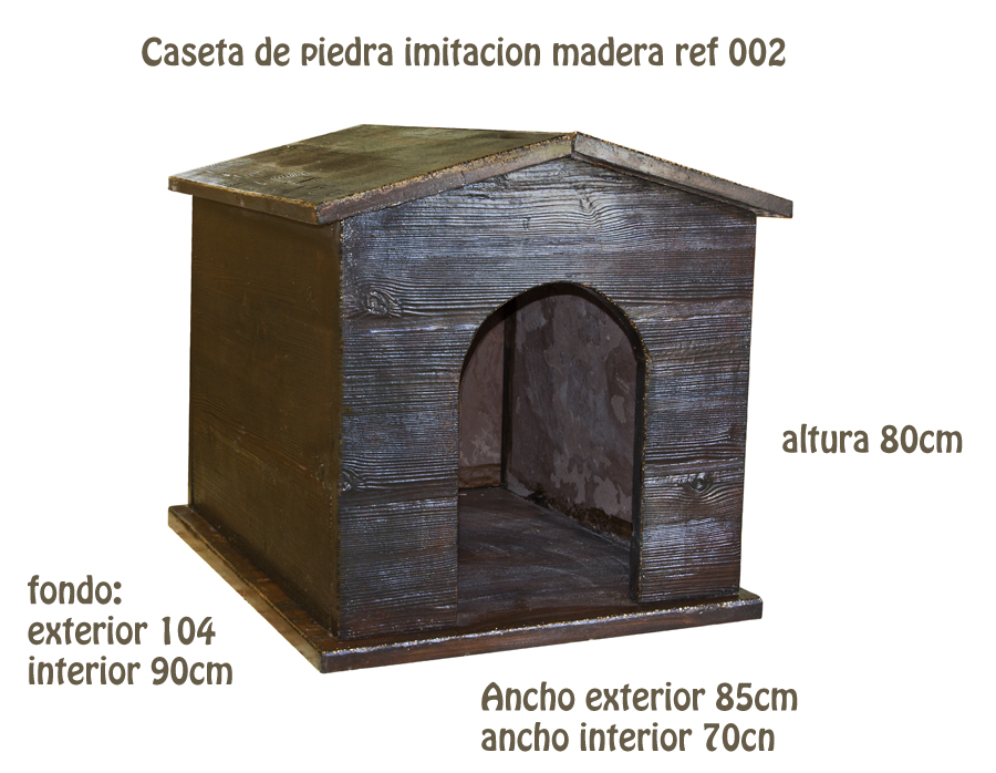 Poco a poco ampliando nuestro catalogo de casetas para perros .Esta vez hemos diseñado unas casetas de piedra en imitación maderaCasetas para perros fabricadas con piedra artificial reforzadas con barillas de hierro corrugado de 6mm . El grosor de las paredes es de 4cm de piedra. La imitación a madera es perfecta, y son más limpias, higiénicas, aislantes y duraderas ( para toda la vida ) que las casetas de madera. No necesitan mantenimiento alguno.
